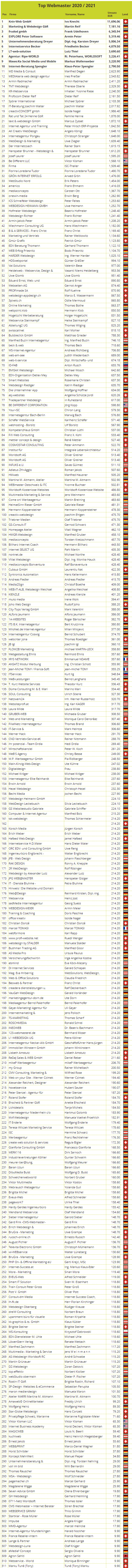 Diese beiden Listen weichen etwas voneinander ab. Einige Partner haben zwei Partnerkonten bei uns. Diese werden für den Wettbewerb addiert.